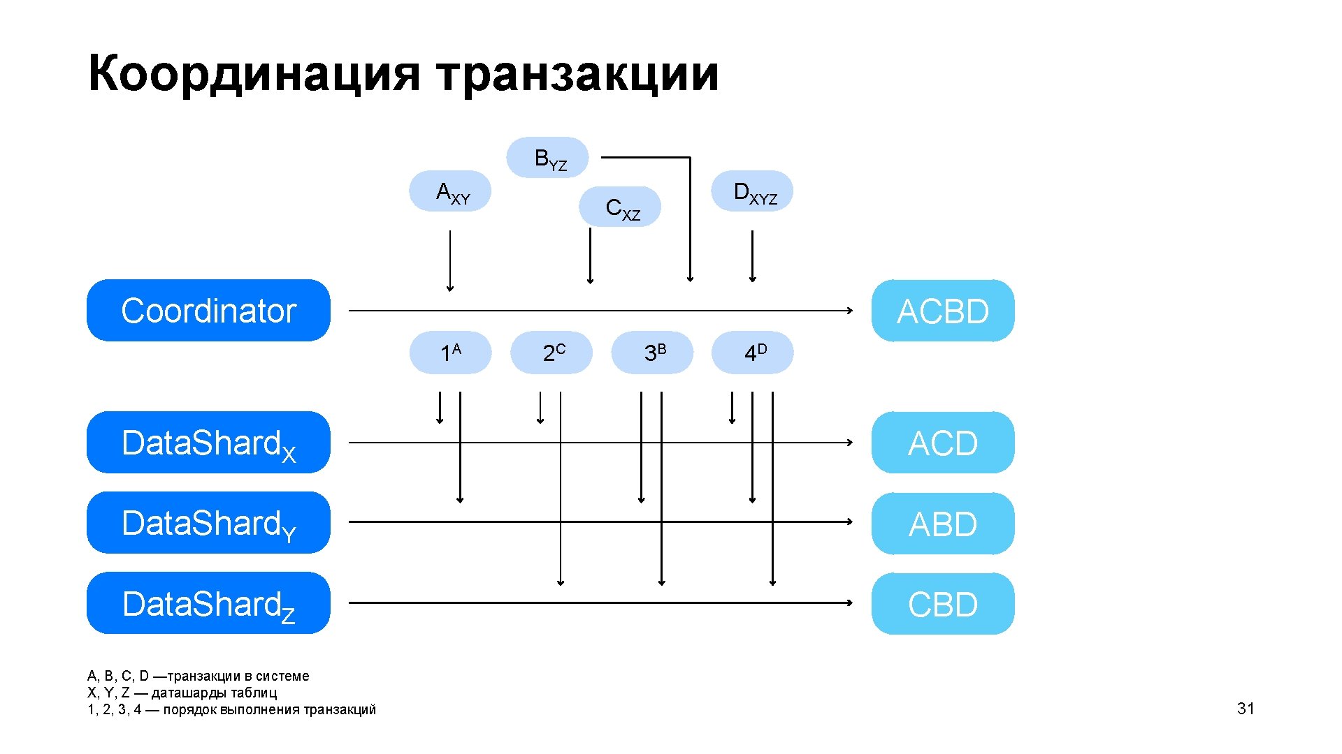 Медиатор Data. Shard. W Mediator. X A B Data. Shard. X Coordinator. X Mediator. Y С D Data. Shard. Y Coordinator. Y Mediator. Z Data. Shard. Z 36