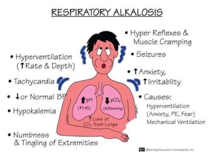 Manifestations of Resp Alkalosis • 1. 2. 3. 4. 5. 6. 7. 8. 9. NEUROMUSCULAR: Related to cerebral A vasoconstriction & Cerebral BF Lightheadedness Confusion Decreased intellectual function Syncope Seizures Paraesthesias (circumoral, extremities) Muscle twitching, cramps, tetany Hyperreflexia Strokes in pts with sickle cell disease