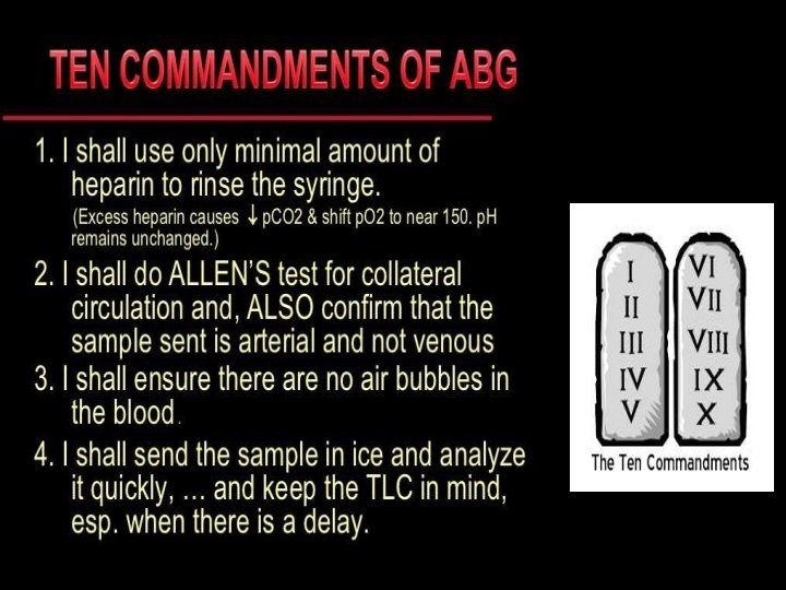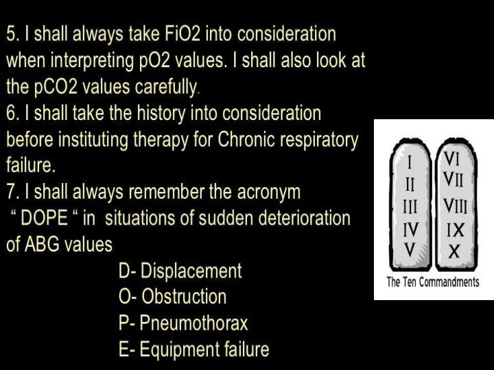 8) I shall practice gentle mechanical ventilation and not to try bring ABG to perfect normal. 9) I shall treat the patient, not the ABG report. 10) I shall always correlate ABG report clinically.