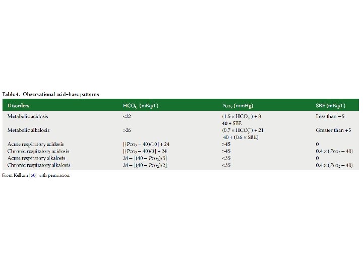 • Step 4: Check degree of compensation Metabolic acidosis Expected Pa. CO 2 (in mm. Hg) = (1. 5 x HCO 3 -) + 8 Or, For every 1 mmol/L decrease in HCO 3 - , Pa. CO 2 should decrease by 1. 3 mm. Hg Metabolic alkalosis Expected Pa. CO 2 (in mm. Hg) = (0. 7 x HCO 3 -) + 20 Or, For every 1 mmol/L increase in HCO 3 -, Pa. CO 2 should increase by 0. 6 mm. Hg * Conversion of mm. Hg to k. Pa ÷ 7. 5