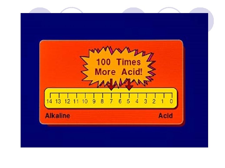 p. H Scale l Expresses [H ] as a number from 0 to 14 l 0 is strongly acidic l 14 is a strong base l The scale is logarithmic, meaning each change is tenfold in the change in concentration. l As the hydrogen ion increases, hydroxide ion concentration decreases.