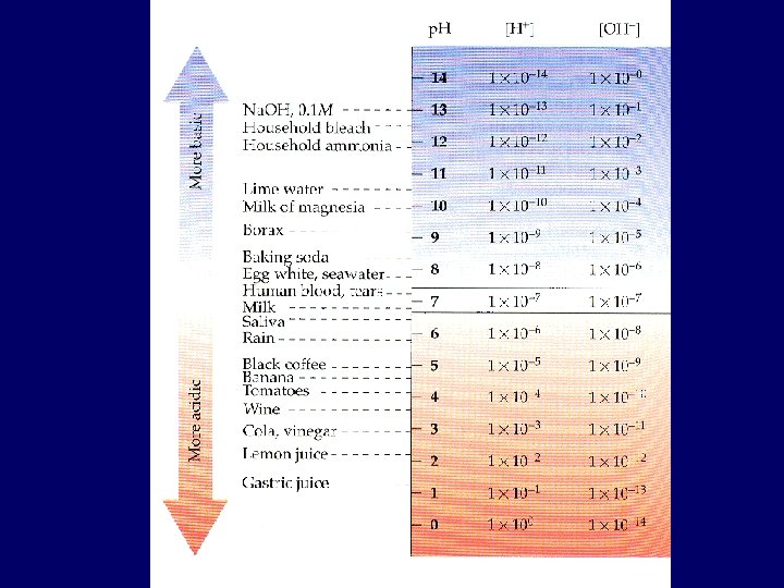 p. H Concept • Expressing [H+] in molarity is cumbersome, so Sorensen proposed the p. H scale • Range: 0 – 14
