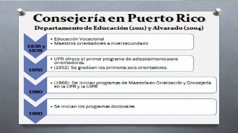 Referencias Corey, G. (1991). Theory and practice of counseling and psychotherapy. Pacific Grove, California: Brooks/Cole Publishing. Alvarado, I. y Acevedo, H. (1999). Desarrollo y consejeri a ocupacional. San Juan, PR: Consultores en Educacio n, Inc. American Counseling Association Crisis Fact Sheets http: //www. counseling. org/Resources/Consumers. Media. aspx? AG uid=97592202 -75 c 2 -4079 -b 854 -2 cd 22 c 47 be 3 f Gale Encyclopedia of Mental Disorders. (2003). Find. Articles. com. Retreived December 5, 2007, www. findarticles. com Hansen, J. T. (2007). Should Counseling Be Considered a Health Care Profession? Critical Thoughts on the Transition to a Health Care Ideology. Journal of Counseling and Development, , 85, 286+. Ivey, A. E. (1988). Intentionalinterviewingandcounseling: Facilitating client development. Pacific Grove, California: Brooks/Cole Publishing.