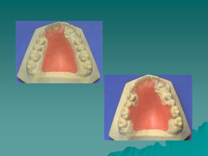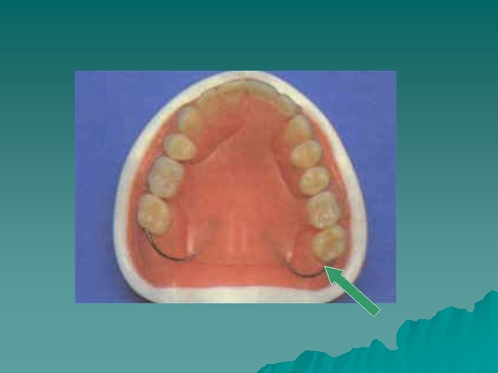 u +ve: cheap, easy to construct and modify. u -ve: 1 - weak and nonrigid. Therefore it is prone to breakage with continuous wear especially from occlusal forces from the lower anterior teeth. To avoid this, such dentures are sometimes made bulky for strength and this may not be accepted by the patient. 2 - Furthermore these dentures are small in size and may be inadvertently swallowed or inhaled. It would prove impossible to track such an object within the body cavities as acrylic is radiolucent. Such dentures therefore should use radiopaque resin to limit medico-legal liability. u Procedure 1 -Impressions are taken and the shade and mould selected. 2 -Generally the working models can be located without the need for a registration visit. 3 -I f appearance and occlusion are satisfactory then the denture is processed.