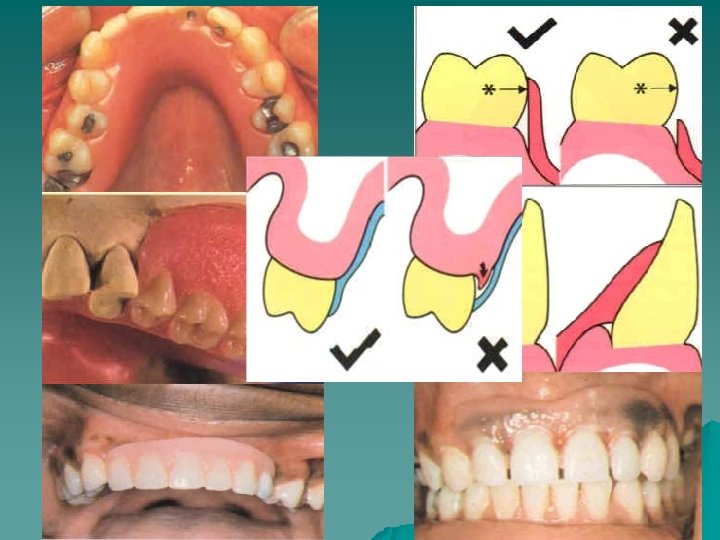 Examples of Acrylic PD Every denture u u u Definition: A mucosa-borne denture that conforms to a specific design to ensure gingival health. It is restricted to the upper arch. Design: The denture requires the presence of bounded saddles. The design should incorporate the following points: • Point contact between natural and artificial teeth • Wide embrasures • 'Free-occlusion' • Uncovered gingivae • Distal stabilisers General principles of partial denture construction should be followed.