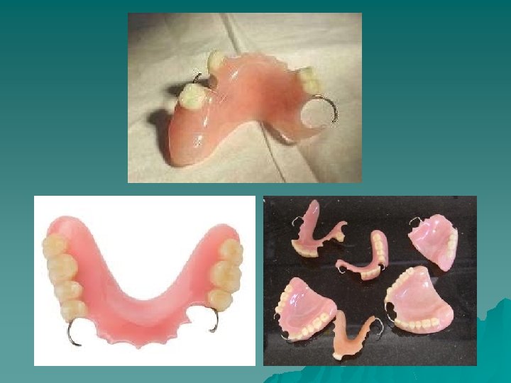Acrylic Partial Denture u Mucosa-borne PD, No support from teeth. u Acrylic Partial Dentures are made entirely of acrylic resin. u No rest seats, No minor and major connectors.