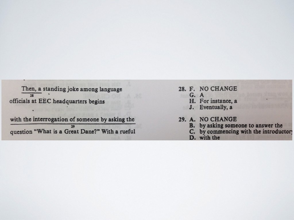 Tip 2: What sounds right • Use your experience with verbal communication to help work out grammar questions that you otherwise won't be able to answer. • If something sounds wrong eliminate it.