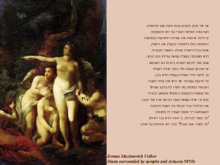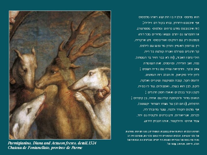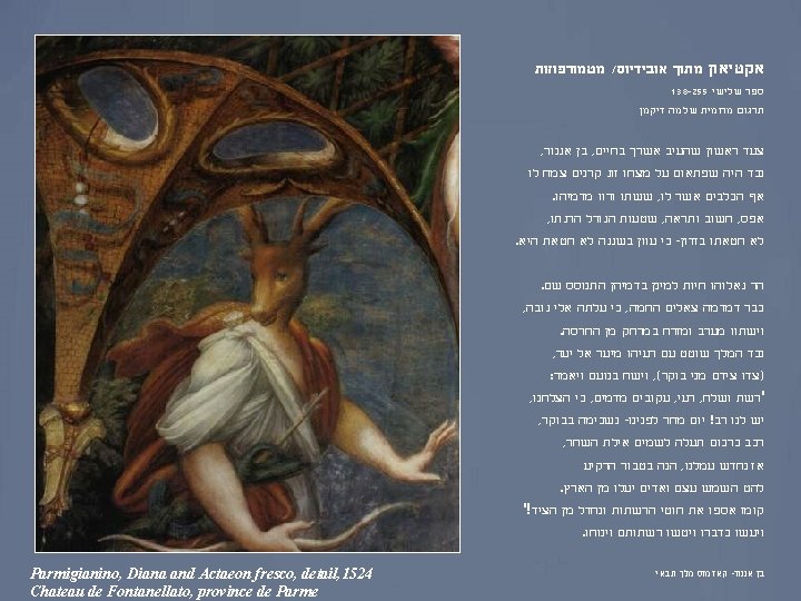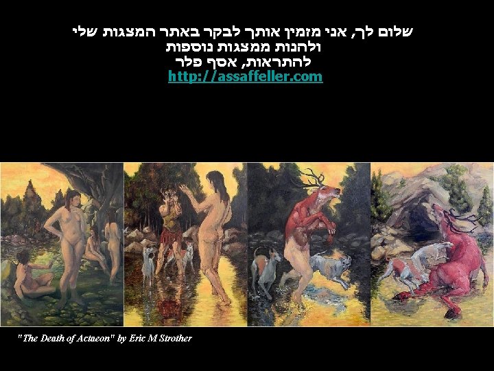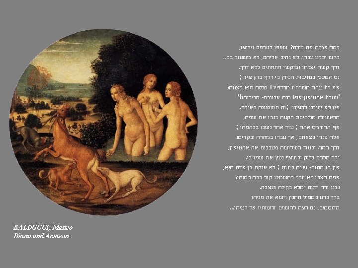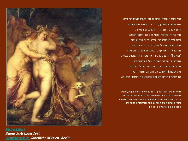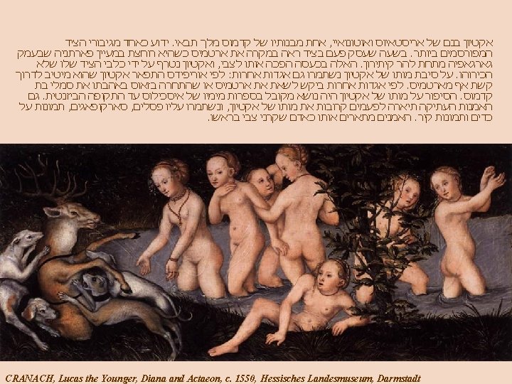 : מקורות http: //en. wikipedia. org/wiki/Actaeon http: //commons. wikimedia. org/wiki/Category: Actaeon http: //www. artcyclopedia. com/Actaeon http: //www. wga. hu/index 1. html http: //www. theoi. com/Artemis Wrath. Aktaion http: //www. mlahanas. de/Greeks/Mythology/Actaeon. html אסף פלר : עריכה CESARI, Giuseppe Diana and Actaeon (detail), 1603 -06 Szépmûvészeti Múzeum, Budapest