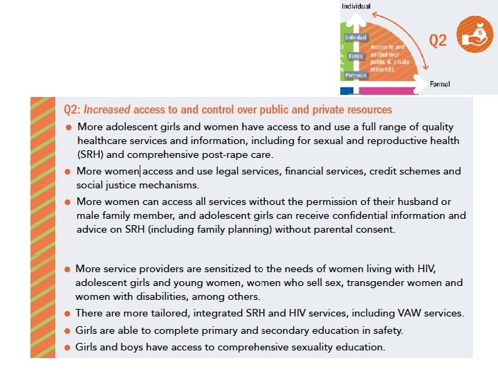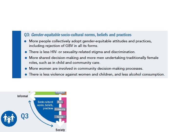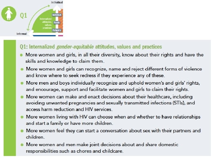 Results in the change matrix • Quadrant 1: Internalized gender equitable attitudes, values and practices • Quadrant 2: Increased access to and control over public and private resources • Quadrant 3: Gender equitable socio-cultural norms and practices • Quadrant 4: Laws, policies and resource allocations that respect, protect and fulfil women’s human rights