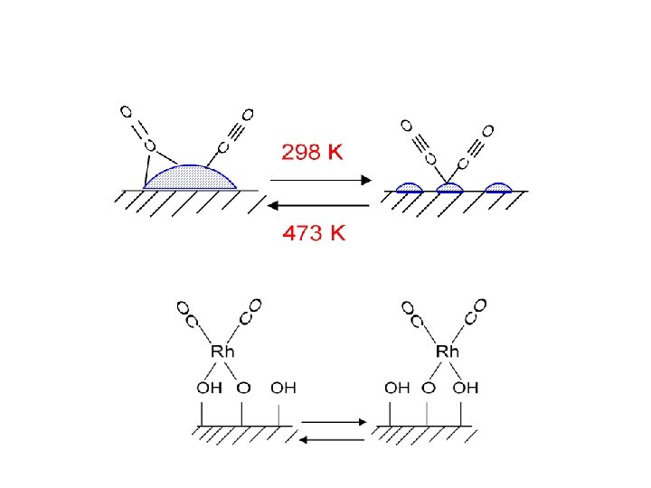 Langmuir-Hinshelwood I: unimolecular surface reactions rate = khet QA = khet Langmuir-Hinshelwood p. A B A b. Ap. A / (1+b. Ap. A) fast RDS khet QA rate QA = 1 Limit Low pressure (p) low enthalpy of adsorption (b) b. Ap. A << 1 rate = khet b. A p. A kexp ……. . first order p. A Limit High pressure (p) high enthalpy of adsorption (b) b. Ap. A >> 1 rate = khet kexp ……. . zero order fast
