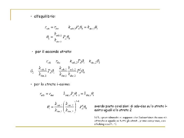 Precursor kinetics Langmuir Isotherm Limitations and approximations rate of adsorption = kads p (1 - ) X rate of adsorption i. e. sticking probability (S) assumes collision at a vacant site is required for adsorption precursor kinetics S a (1 - )
