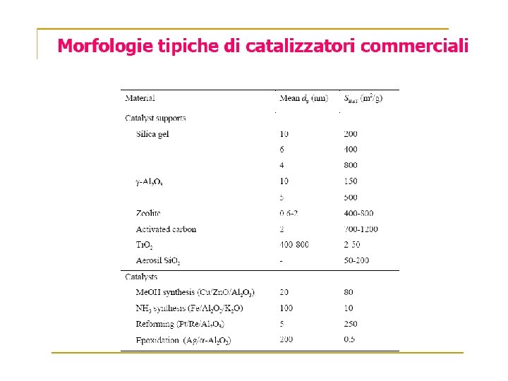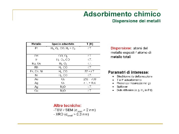 Dispersione metallica numero di atomi superficiali di metallo numero totale di atomi di metallo. Diametro medio delle particelle metalliche ( geometria sferica) = 6 V/A l'area media occupata da un atomo di metallo è il volume di un atomo di metallo nel "bulk". peso atomico del metallo, la sua densità numero di Avogadro.