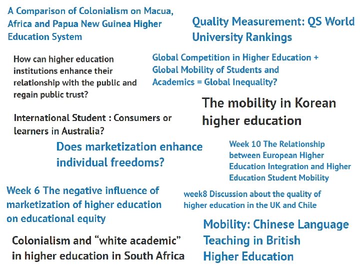 Blog-based module “I adore this blog. We learn a topic in lecture session from Sylvie then we choose a relevant piece to write. After that, we learn from classmates in tutorial session, and we write the comparison in blog. ”