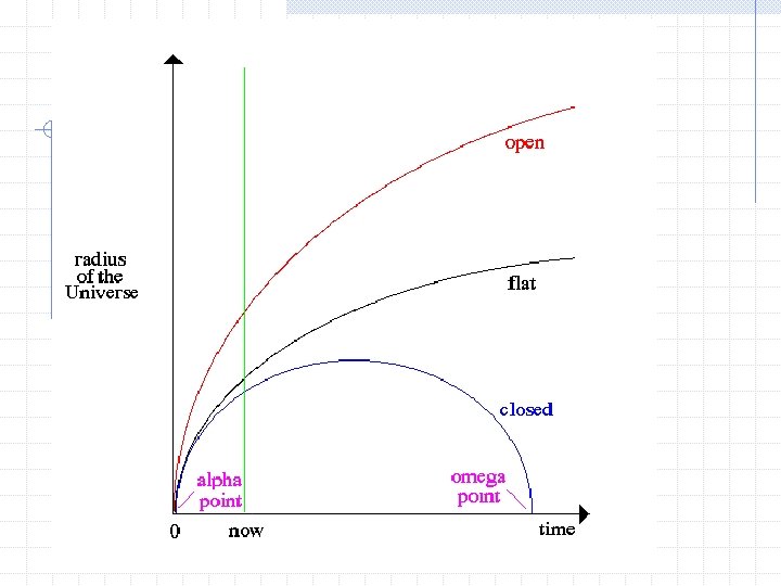 Which Universe Do We Live In? 1. Space-time could have a positive curvature [curvature is due to gravity according to General Relativity]: like the surface of a sphere, finite and closed. 2. Space-time could have zero curvature: like a flat surface, infinite or it would have an edge. An open universe. 3. Space-time could have negative curvature: like a saddle, infinite or it would have an edge. An open universe.