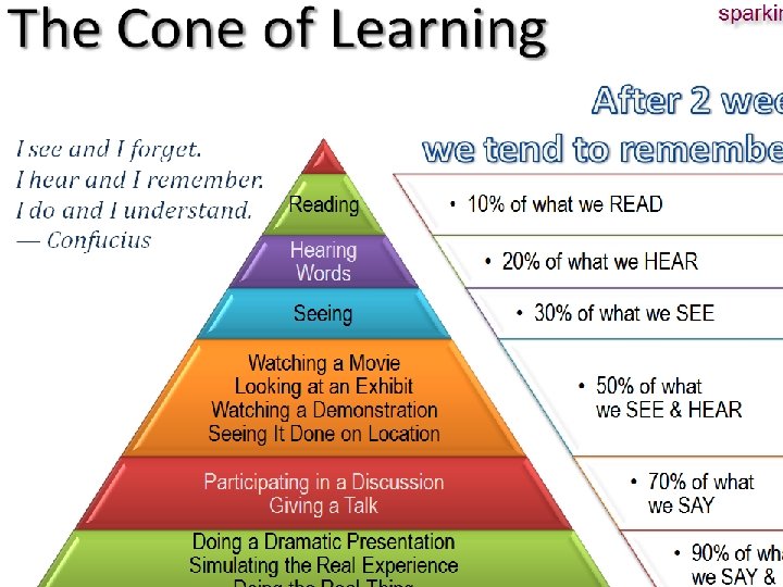 This is not new thinking… I HEAR AND I FORGET I SEE AND I REMEMBER I DO AND I UNDERSTAND Confucius 5 th Century BCE China “One must learn by doing the thing, for though you think you know it-you have no certainty, until you try. ” Sophocles 5 th. Century BCE Greece