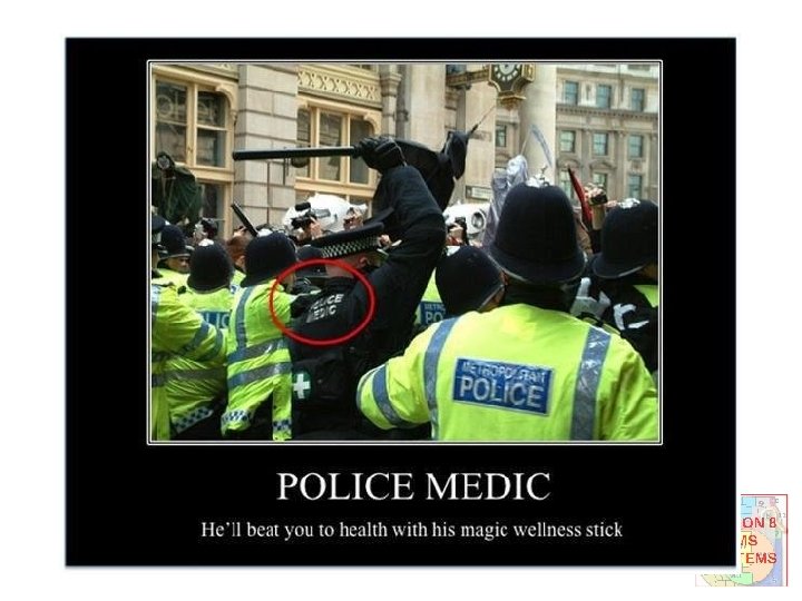 TEMS vs. RTF TEMS – Tactical Emergency Medical Support – Works directly with SWAT – In the hot zone – Primary task is SWAT members health – Can become RTF once threat is mitigated – Trained in SWAT tactics and nomenclature RTF – Works with police • Unified Command – Operates in the warm zone – Primary task is civilian casualties • Victim removal