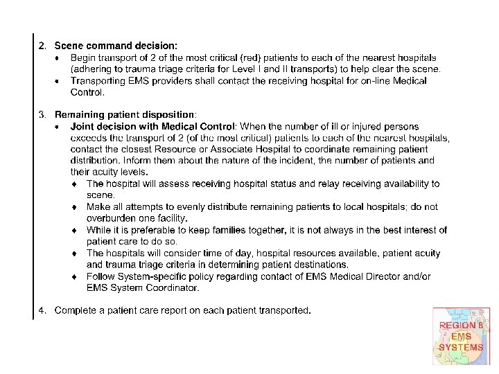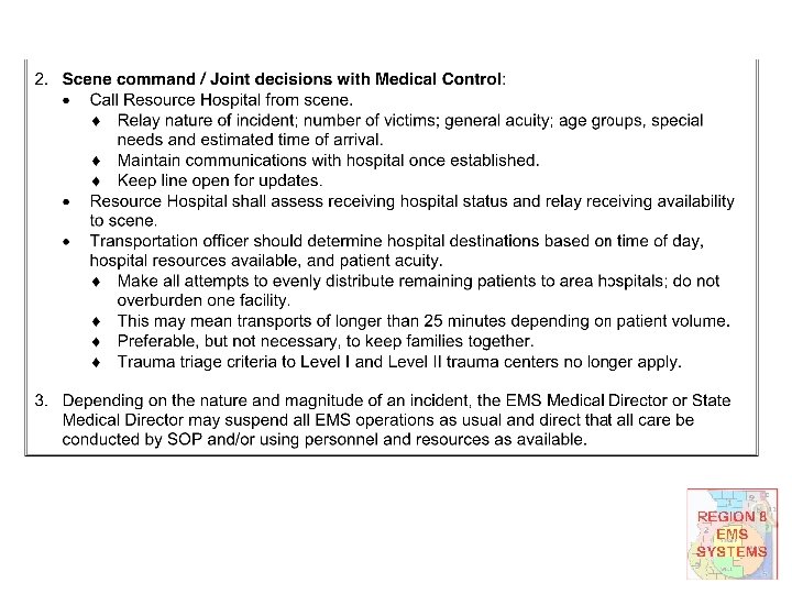 Scenario 2 • What is your next action? – Do you take medical command/triage? – Or do you begin treatment/transport? • What are your treatment priorities in this situation? • What resources in your response area are en route? And what others will you need to call?