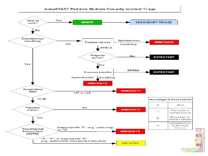 Scenario 1 • On scene you have 2 greens with minor abrasions. • 2 victims are conscious and have GSW to the arms with copious dark red hemorrhaging • 2 victims have GSW to the legs are responsive to pain, pale, with copious bright red bleeding • 1 victim is unresponsive with a GSW to the chest breathing 4 times per minute
