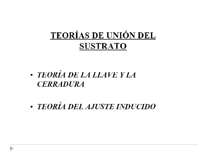 Llave y cerradura E. Fisher, 1894 La enzima tiene un sitio (el sitio activo de la enzima) en el que encaja perfectamente el sustrato, al unirse ambos se lleva a cabo la catálisis