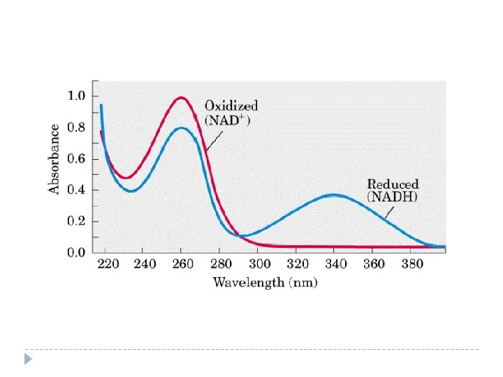 En la práctica El ensayo de actividad está basado en la detección del cambio de absorción del NADH y el NAD+. El NADH es una molécula que absorbe a 340 nm, mientras que el NAD+ no.