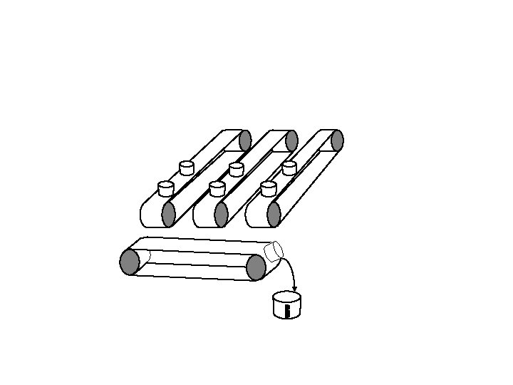 CCD Analogy A common analogy for the operation of a CCD is as follows: An number of buckets (Pixels) are distributed across a field (Focal Plane of a telescope) in a square array. The buckets are placed on top of a series of parallel conveyor belts and collect rain fall (Photons) across the field. The conveyor belts are initially stationary, while the rain slowly fills the buckets (During the course of the exposure). Once the rain stops (The camera shutter closes) the conveyor belts start turning and transfer the buckets of rain , one by one , to a measuring cylinder (Electronic Amplifier) at the corner of the field (at the corner of the CCD) The animation in the following slides demonstrates how the conveyor belts work.