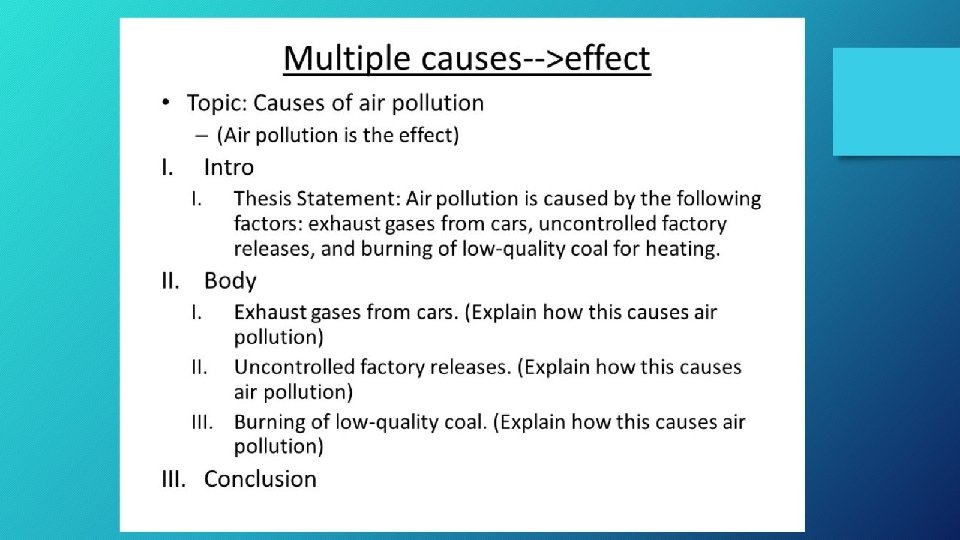 What are some of the core causes of crime in our country? CONCLUSION to Cause and Effect Essay: Summarize Restate Thesis: In conclusion, poverty, abuse of power and illegal drugs are some of the major causes of crime in our Island. Explain / Elaborate Thesis: Lack of adequate resources to address these issues result in their influence towards crime. /As long as these societal issues continue to plague our society, so too will crime. Offer Solution: As a result, a direct cause and effect relation is apparent and therefore crime will only lessen when these causes are aggressively addressed.