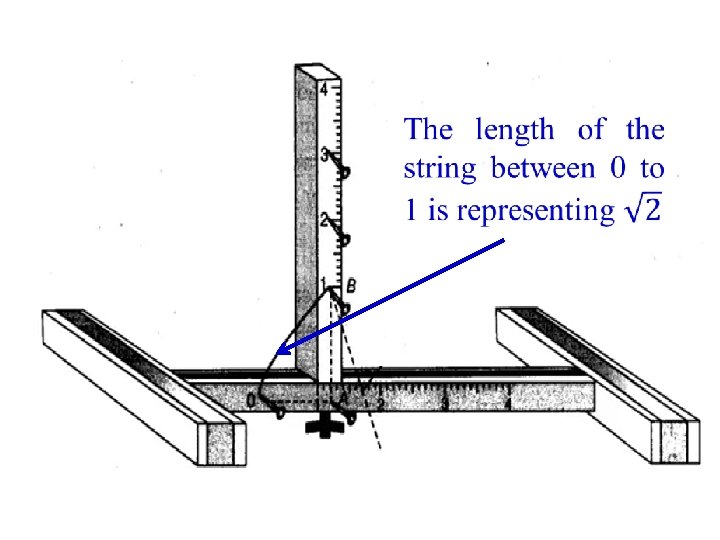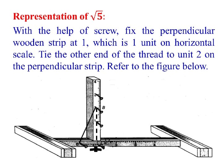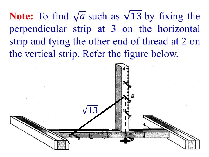 Fix nails at a distance of 1 unit each, starting from 0, on both the strips. Now, tie a thread at the nail at 0 on the horizontal strip. Refer figure below.