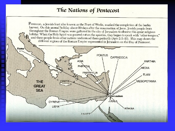 Acts 2: Church's Birth n 2: 1 -4 -Coming of the Spirit n 2: 5 -12 -Diverse participants n 2: 13 -Charge of drunkenness