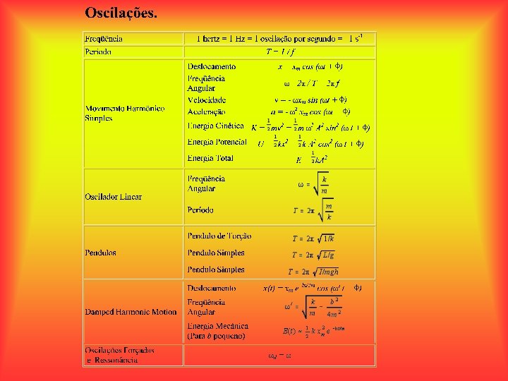 As principais formas de oscilação podem ser reduzidas a sistemas do tipo. massa-mola Ondas de superfície. O Pêndulo. Ondas.