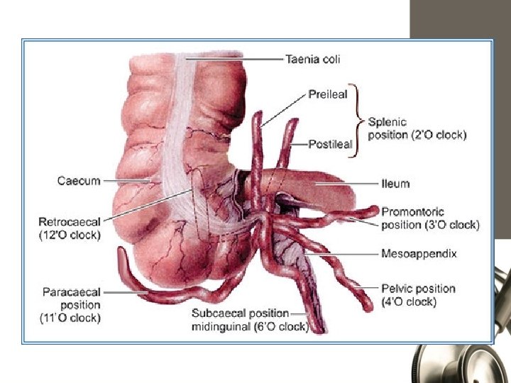 Anatomical Positions RETROCAECAL 74% PELVIC 21% PARACAECAL 2% SUBCAECAL 1. 5% PREILEAL 1% POSTILEAL 0. 5%