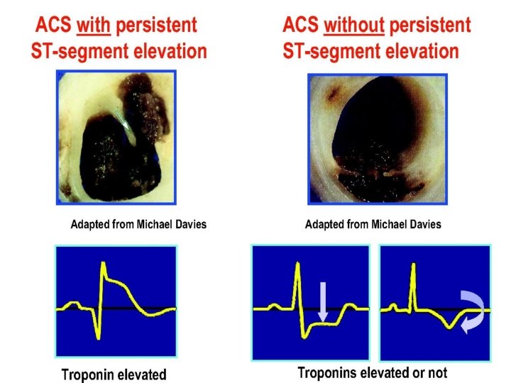 Diagnosis of ACS Clinical presentation History of patient Physical examination Electrocardiogram Biochemical markers - troponin Non-invasive imaging - Echo Imaging of coronary arteries - coronary angiography