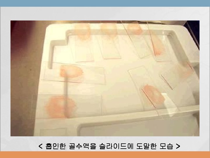 Pathologic findings Peripheral Smear in child with ALL: decreased platelets and no normal WBC’s Bone marrow smear blast cells must be >25%