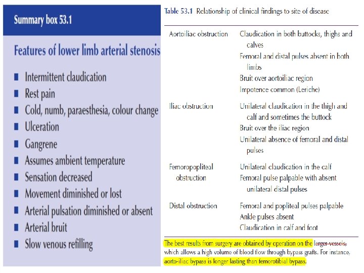 • Paralysis: Paralysis the onset of motor paralysis is an indication of advanced limb threatening ischemia & impending gangrene If changes persist beyond 12 hs. Tense swelling with acute tenderness of a muscle belly occur. ( common in gastrocnemious muscle after superficial femoral artery occlusion). The extent of paralysis must be determined. • Skin & subcutaneous tissue have greater resistance to hypxia than nerves & muscles. • Peripheral pulses: pulses in earlier stages the pulse at site of occlusion can be palpable but absent distally, because the fresh clot, is soft, semilquid consistency & allow the pulse transmission to the site of occlusion, when becomes organized & densely compacted the pulse lost at site of occlusion.