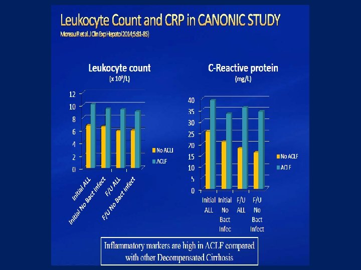 Potential Triggers of Acute on Chronic liver Failure, Number (%) CANONIC n=303. (9) - Exacerbation hepatitis B Shi et al n=405. (14) --- 145 (35. 8) - Bacterial infection 98 (32. 6) 113 (27. 9) - Active alcoholism within the past 3 months 69 (24. 5) 25 (6. 1) - Gl haemorrhage 40 (13. 2) - Other (TIPSS, surgery, large volume paracentesis 40 (9. 8) 25 (8. 6) 9 (2) - Without albumin, hepatitis, alcoholic hepatitis) Hernaez R. , et al. Gut 2017; 0: 1 -13
