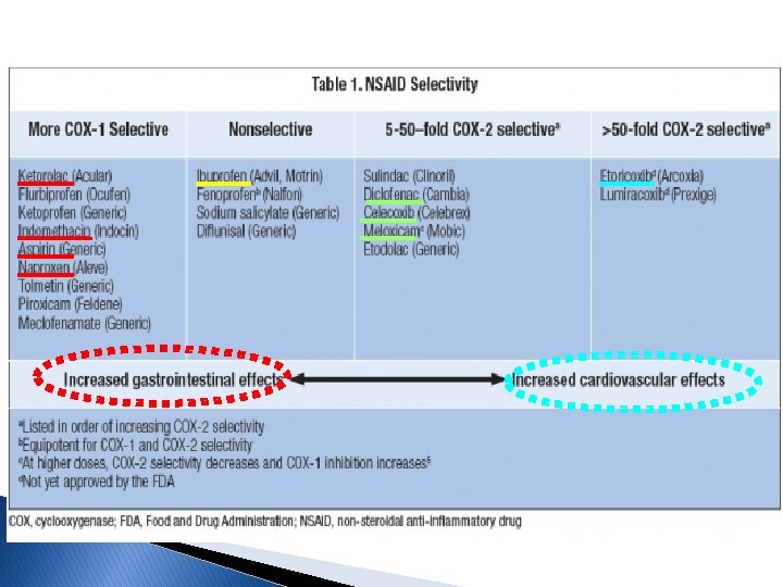 Drug Nonselective inhibitor n. Diclofenac n. Indomethacin n. Ibuprofen Dosage Maximum daily dose 50 mg PO bid-tid 75 mg PO bid 200 -800 mg q 6 hr. 150 mg 3200 mg Cox-2 inhibitor n. Celecoxib 100 -200 mg PO bid n. Parecoxib 20 -40 mg iv q 12 hr n. Etoricoxib 60 -120 mg OD 400 mg 80 mg 120 mg