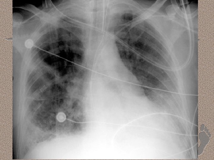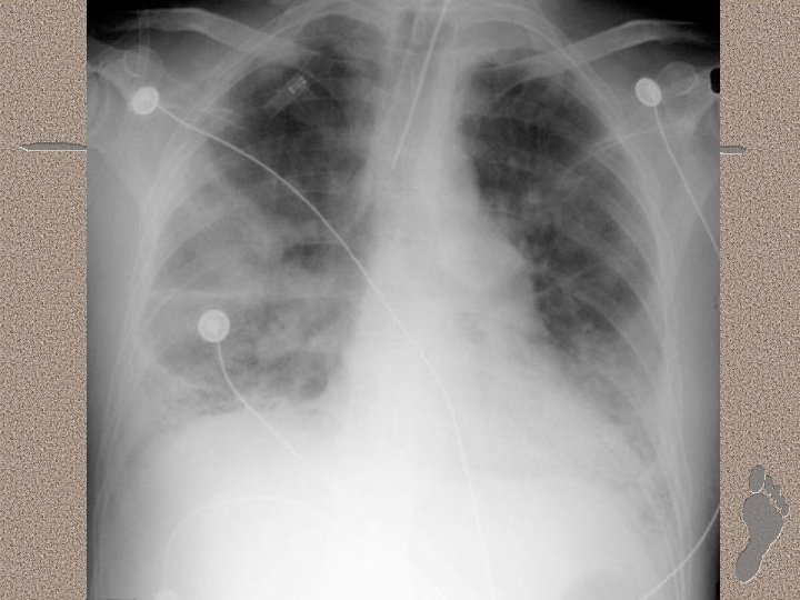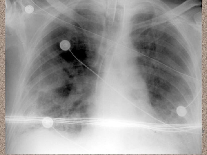 Pemeriksaan Penunjang • Laboratorium • AGD : alkalosis respiratorik pada fase awal, dan berganti menjadi asidosis respiratorik pada fase lanjut • Leukositosis (sepsis), anemia, trombositopenia (SIRS), peningkatan kadar amilase (pankreatitis) • Gangguan fungsi ginjal dan hati. • Pencitraan • • Foto dada : gambaran radioopak difus CT-Scan : pola heterogen, predominasi infiltrat pada dorsal paru (supine)