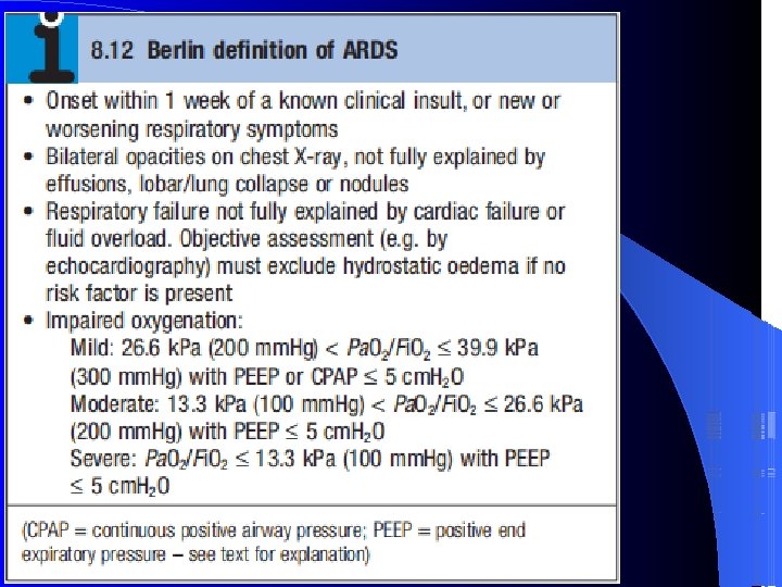Emphases Definition of ARDS Pathophysiology Clinical presentation & diagnosis of ARDS The principles of treatment of ARDS
