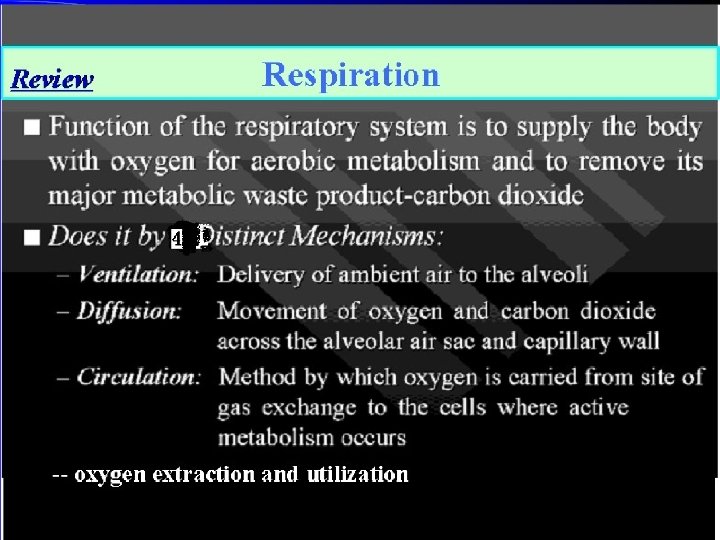 (1) Respiration (2) (3) ventilation diffusion circulation (4) oxygen extraction and utilization