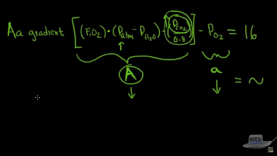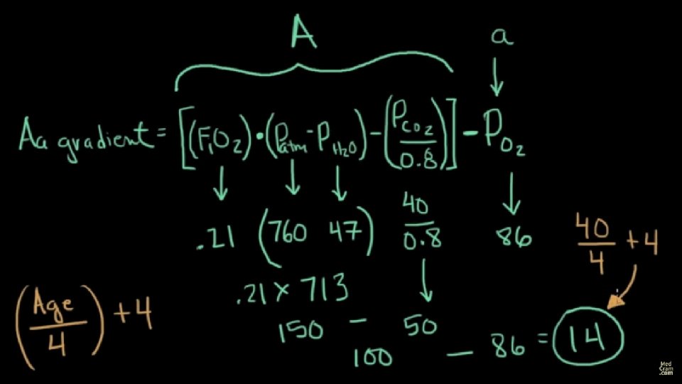 A-a gradient aka the difference between alveolar and arterial oxygen 150