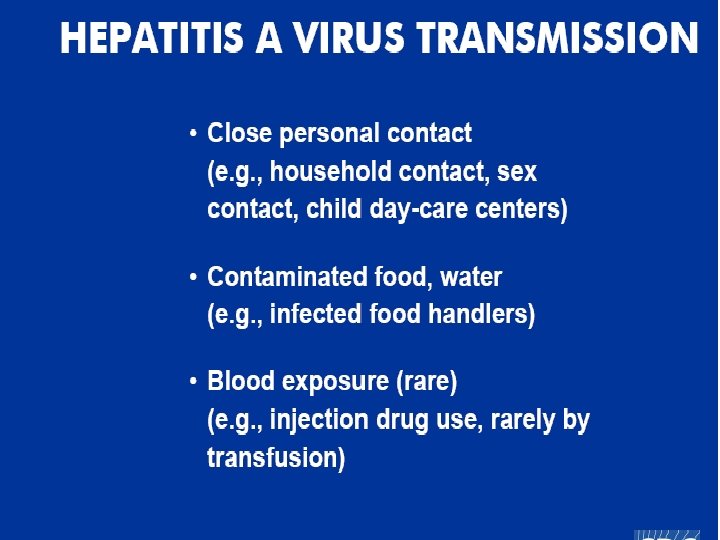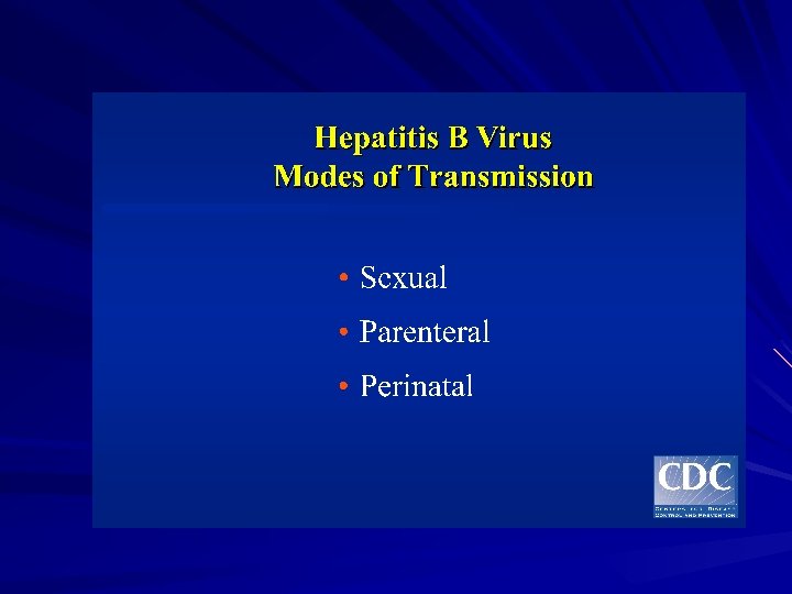 Possible transmission route of HBV in KSA 1 -Horisontal transmission (person to person) is the main transmission route 2 -Perintal transmission (positive HBSAG mothers) especially if they are HBEAG positive 3 - Heterosexual transmission 4 -Illegal injection drug use 5 - Contaminated equipment used for therapeutic injections and other health care related procedures 6 - Folk medicine practice 7 -Blood and blood products transfusion without prior screening