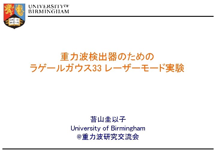 エラーシグナル LG 33 コサインモードPDH信号 Signal Voltage [V] 2 1 0 -1 -2 70. 6 71 71. 4 Time [s] 71. 8 フィッティング: Mirror losses: 3116. 29 ppm Modulation index: 0. 017641 Demodulation phase: 99. 6749 degrees 9 th April 2010 Keiko Kokeyama 23/26