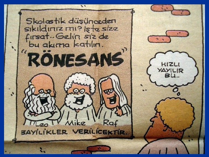 Rönesans ve Reform n n n n Rönesans’ın sonuçları Skolastik görüş yıkılmıştır. Yerine pozitif ( Bilimsel ) düşünce hakim olmuştur. Reform hareketlerini hazırlamıştır. Bilim ve teknikteki gelişmeler hızlanmıştır. Avrupa’da sanattan zevk alan aydın ( Mesen ) sınıf ve halk sınıfı oluşmuştur. Din adamlarının ve kilisenin halk üzerindeki otoritesi sarsılmıştır. Avrupa’nın her yönden gelişmesine ve güçlenmesine öncülük etmiştir.
