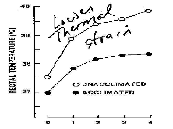 • GREATER SWEATING CAPACITY, PARTICULARLY IN A HUMID ENVIRONMENT. SWEATING CAPACITY INCREASES FROM 1. 5 L/HOUR UP TO 2 -3 L/HOUR WITH MAXIMUM DAILY SWEAT RATE OF 10 -15 L. • INCREASED VASODILATION OF CUTANEOUS VASCULATURE AND INCREASED SKIN BLOOD FLOW FOR A GIVEN INCREASE IN CORE TEMPERATURE, WHICH INCREASES CONVECTIVE HEAT TRANSFER TO THE SKIN AND EVAPORATIVE AND CONVECTIVE HEAT LOSS TO ENVIRONMET.