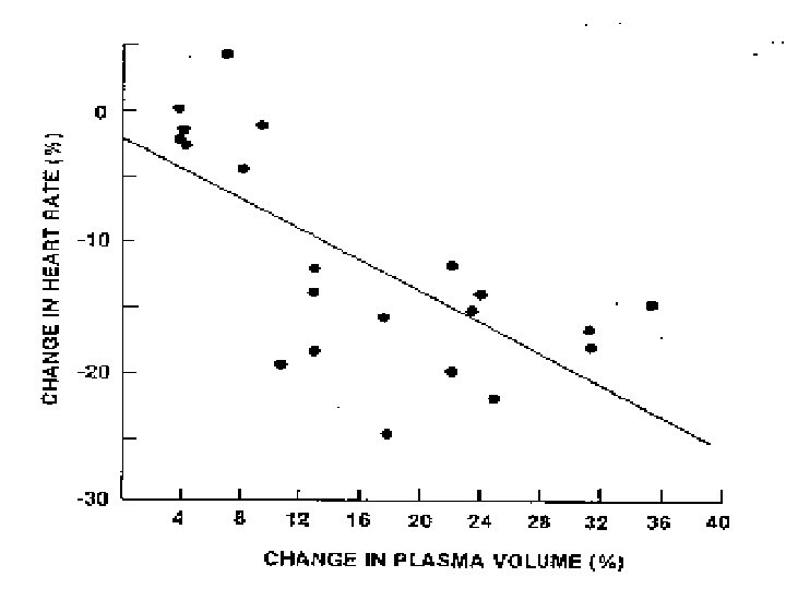 • PLASMA VOLUME INCREASES INITIALLY, BUT EVENTUALLY RETURNS BACK TO BASELINE VALUE (INCREASED PLASMA VOLUME DECREASES HEART RATE).