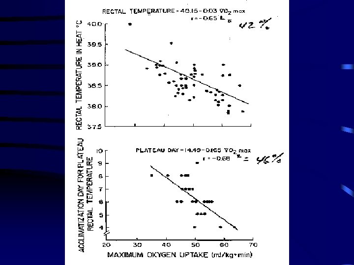 • RETURN OF MAXIMAL OXYGEN UPTAKE RATE TO NORMOTHERMIC, BASELINE VALUE; ACUTE HEAT STRESS DECREASES MAXIMAL OXYGEN UPTAKE RATE. • THE AFFECT OF HYPOHYDRATION WTH THERMAL STRESS IN REDUCING MAXIMAL OXYGEN UPTAKE RATE IS NOT AFFECTED BY ADAPTATION TO HEAT.