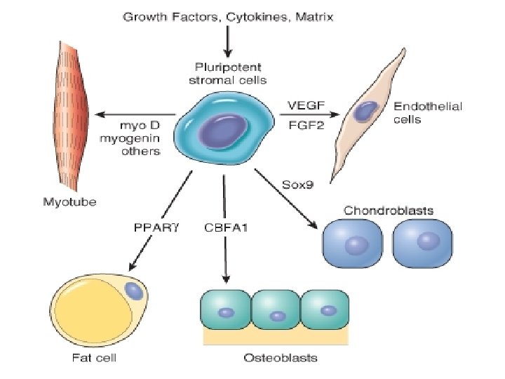 In una fibra stimolata, la cellula satellite si divide; una cellula figlia si fonde con la fibra muscolare adiacente, fornendo così un nucleo addizionale. L’altra cellula figlia rimane quiescente Eventi biochimici: Un ruolo chiave è svolto da l’IGF-1 (insulin-like growth factor 1) e la sua isoforma MGF (meccano growth factor, derivata dal gene dell’IGF-1 per splincing alternativo). L’IGF-1 è sintetizzato nel fegato e nel muscolo. l’IGF-1 “muscolare”, possiede funzioni autocrine e paracrine: La concentrazione di IGF-1 aumenta con l’ esercizio IGF-1 è un potente agente mitogeno