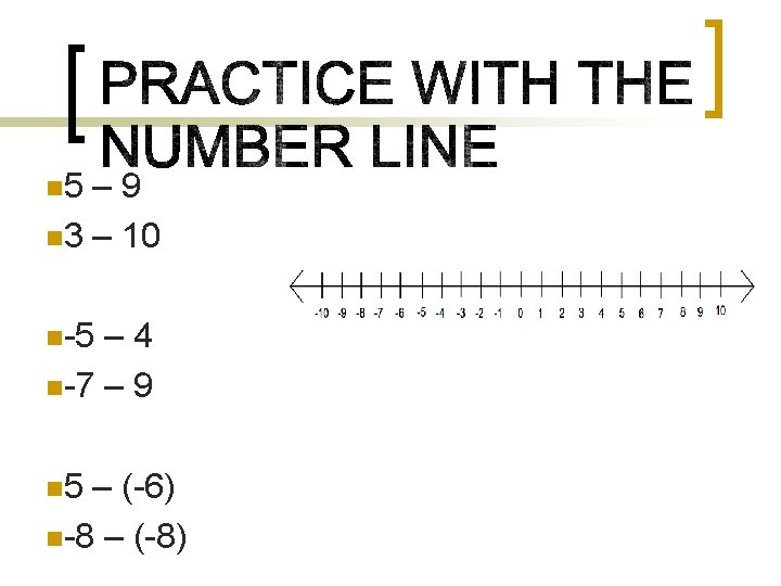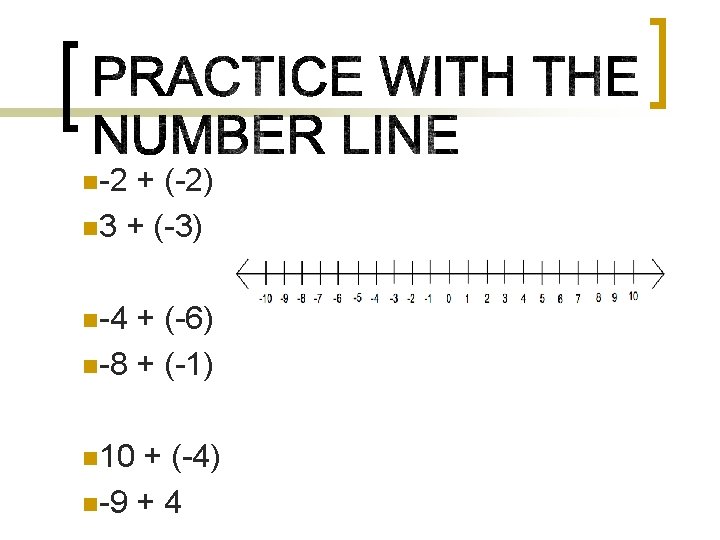 n. Add 3+4 using a number line. +4 -2 n. Add -4 + (-2) -7