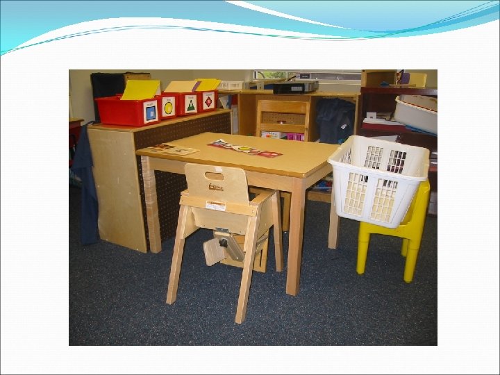 Options in mainstream Withdrawal spaces – tents/ library Withdrawal tools – headphones / dark glasses/ scarves/ scented hankies/ strong flavours/ modified uniforms/ backpacks/ body warmers / flexibility with uniform Access to sensory integration style activities – could be as simple as getting a turn on playground equipment every day/ big balls to sit on/ rockers on chairs – or could be a comprehensive professional program