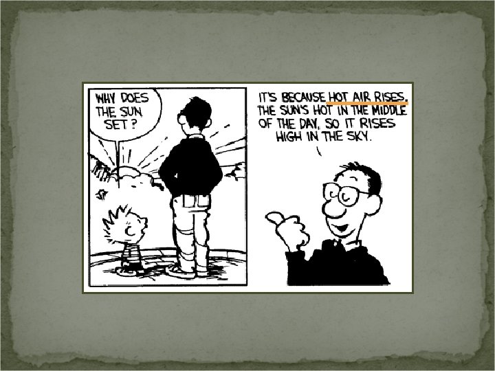 A Story of Conceptual Change The students placed thermometers inside sweaters, hats, and a rolled-up rug After 15 minutes, the temperature didn’t increase, so one student suggested to leave it overnight The students predicted three-digit temperatures the next day But the students came in the next morning and found the temperature to be the same “Cold air got in somehow” “We didn’t leave them in there long enough” www. exploratorium. edu/IFI/resources/workshops/teachingforconcept. html