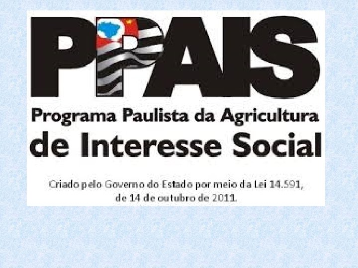 POLITICAS PUBLICAS DE APOIO A AGRICULTURA FAMILIAR PPAIS Programa Paulista da Agricultura de Interesse Social O Programa Paulista da Agricultura de Interesse Social PPAIS é uma ação do Governo do Estado de São Paulo que visa estimular a produção e garantir a comercialização dos produtos da agricultura familiar. O Programa faz com que o Estado se torne o principal comprador dos produtos da agricultura familiar permitindo a melhora da qualidade de vida dos que trabalham no campo.